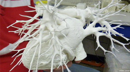 يقف عالم الرياضيات هارتموت شفاندت، الباحث في جامعة برلين التقنية، أمام جهاز يشبه ثلاجة كبيرة الحجم رمادي اللون ومجهز بباب من الزجاج. للوهلة الأولى يبدو هذا الجهاز عاديا لكنه فعلا يستطيع القيام بأشياء مدهشة، فالأمر هنا يتعلق بطابعة ليزر تعمل بتقنية ثلاثية الأبعاد وتقوم بإنتاج صمامات القلب البشري.